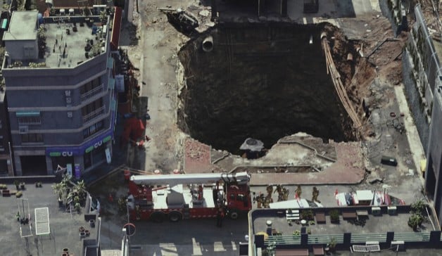 거대한 싱크홀에 빠진 빌라 건물 속 사람들의
